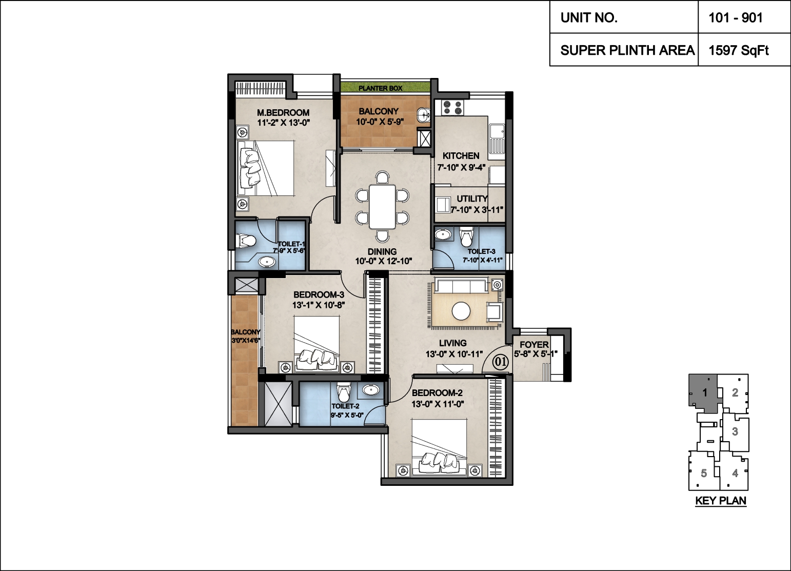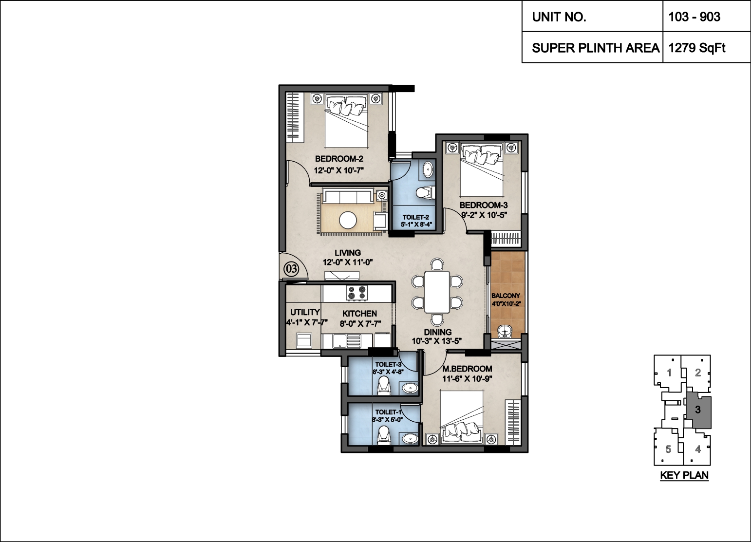 Apartment type : 3BHK Apartments